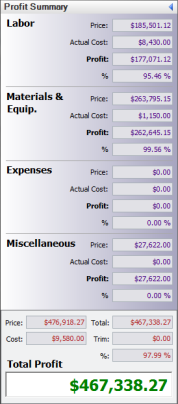 The Profit Summary gives us the ‘big picture�?as the Project progresses.